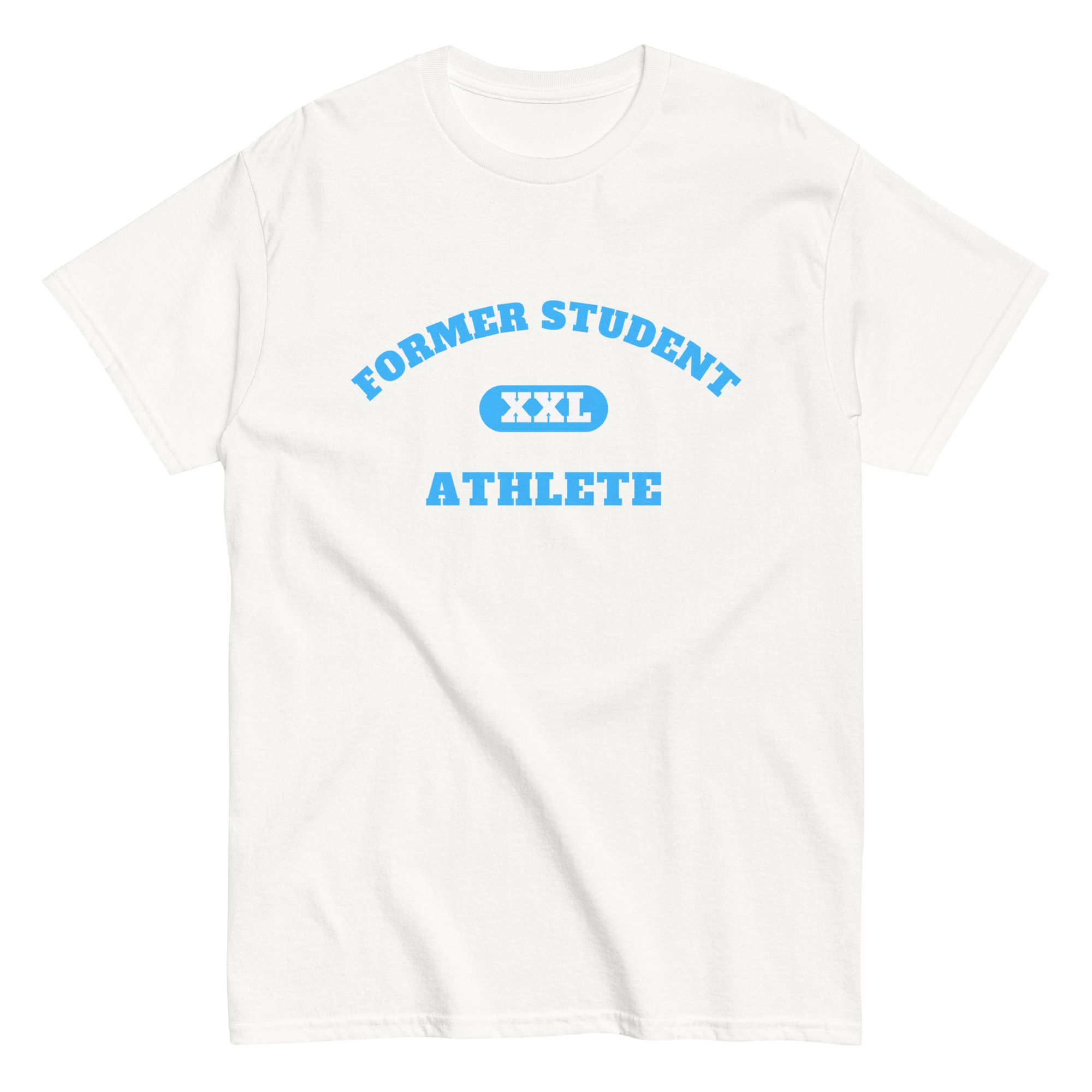 Men’s classic tee Former-Student-Athlete-XXL(Alfa)-in-Light-Blue-Letters