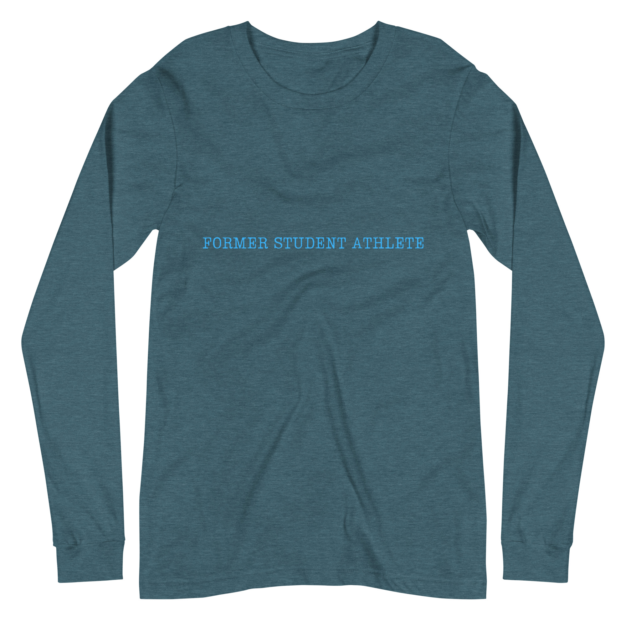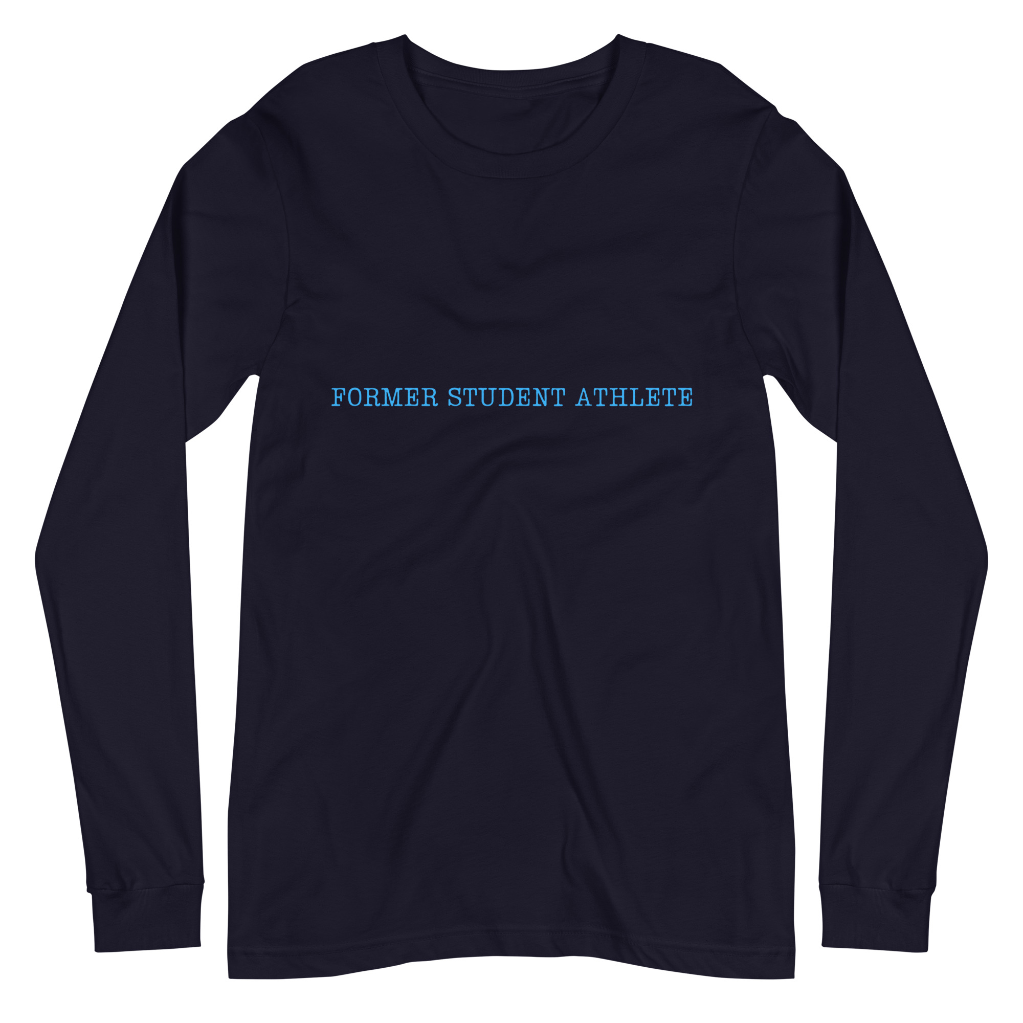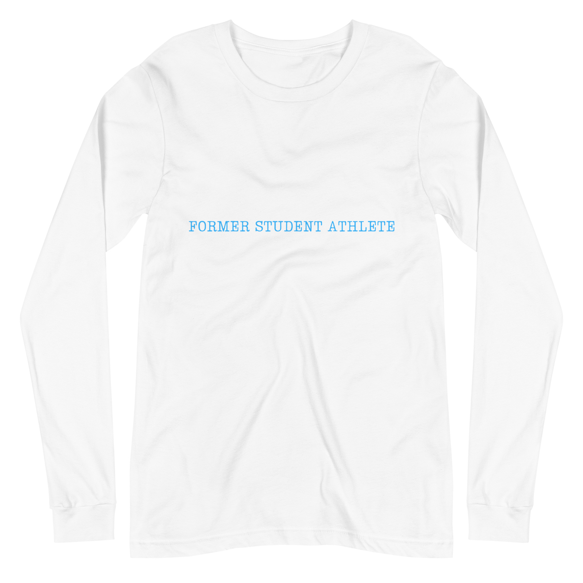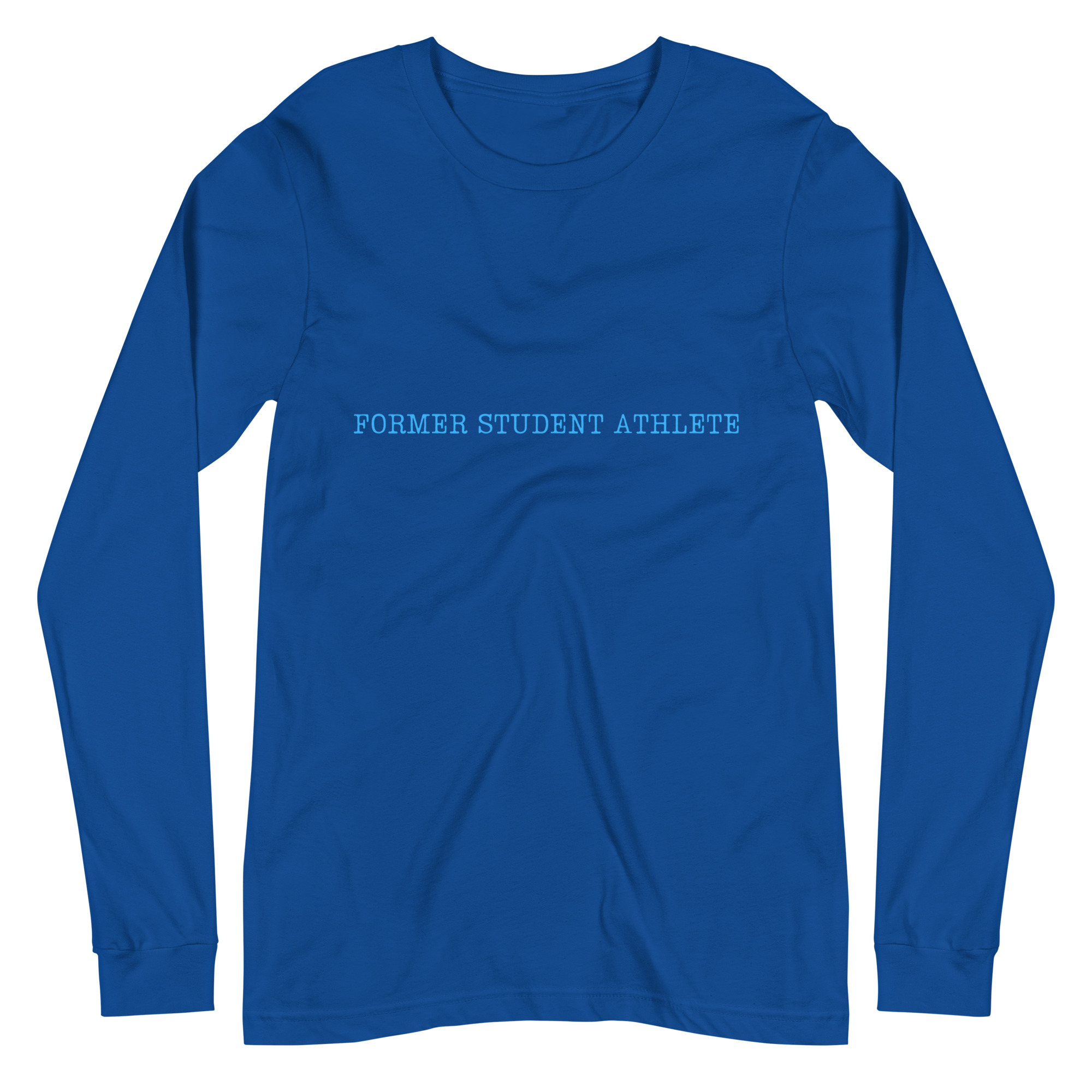 Unisex Long Sleeve Tee Former-Student-Athlete-Line-2(Lumios)-in-Light-Blue-Letters